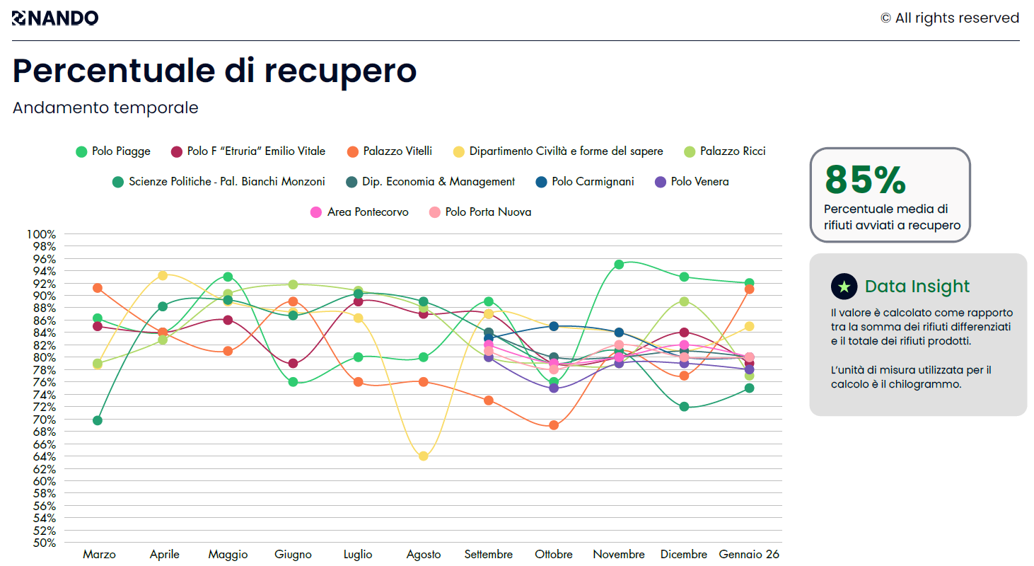 The latest update on waste sorting data at the University (end of January 2026) includes:
