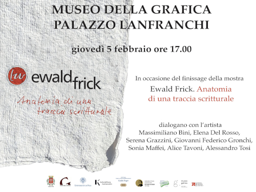 In vista della chiusura della mostra Ewald Frick. Anatomia di una traccia scritturale, giovedì 5 febbraio, alle ore 17.00, presso il Museo della Grafica, si svolgerà una tavola rotonda alla presenza dell’artista.