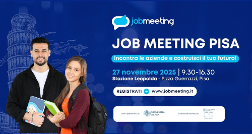 Giovedì 27 novembre, a partire dalle ore 9.30, presso la Stazione Leopolda di Pisa (Piazza Francesco Domenico Guerrazzi, 2) si svolgerà il “Job Meeting 2025“.