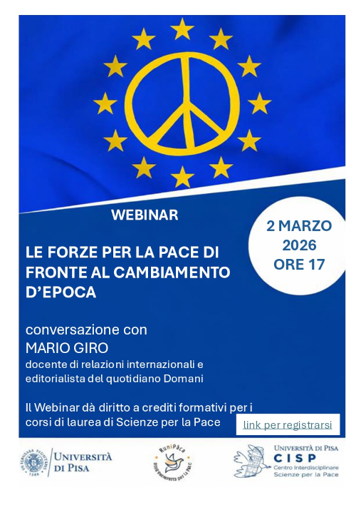Lunedì 2 marzo, alle ore 17.00, si svolgerà online il seminario dal titolo “Le forze per la pace di fronte al cambiamento d’epoca”.