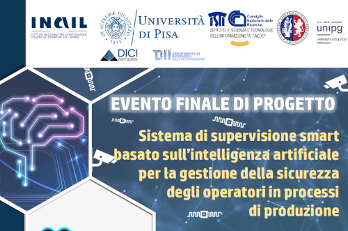 L’evento conclude il progetto di ricerca AISAFETY “Sistema smart integrato basato sull’intelligenza artificiale per la gestione della sicurezza degli operatori in processi di produzione”, cofinanziato da INAIL nell’ambito dei Bandi di Ricerca in Collaborazione (BRiC) 2022.