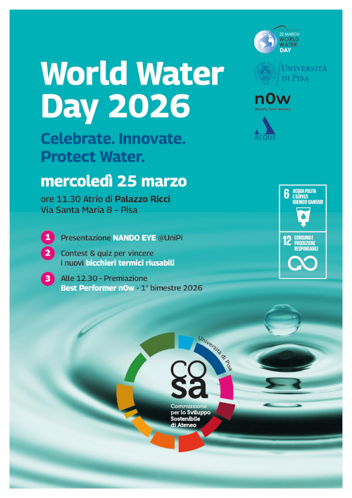 In occasione del World Water Day 2026 (22 marzo), mercoledì 25 marzo, alle ore 11.30, presso l’atrio di Palazzo Ricci (via Santa Maria 8), la Commissione per lo Sviluppo Sostenibile di Ateneo (CoSA), in collaborazione con Acque S.p.A, organizza un’iniziativa dedicata a studenti e studentesse.