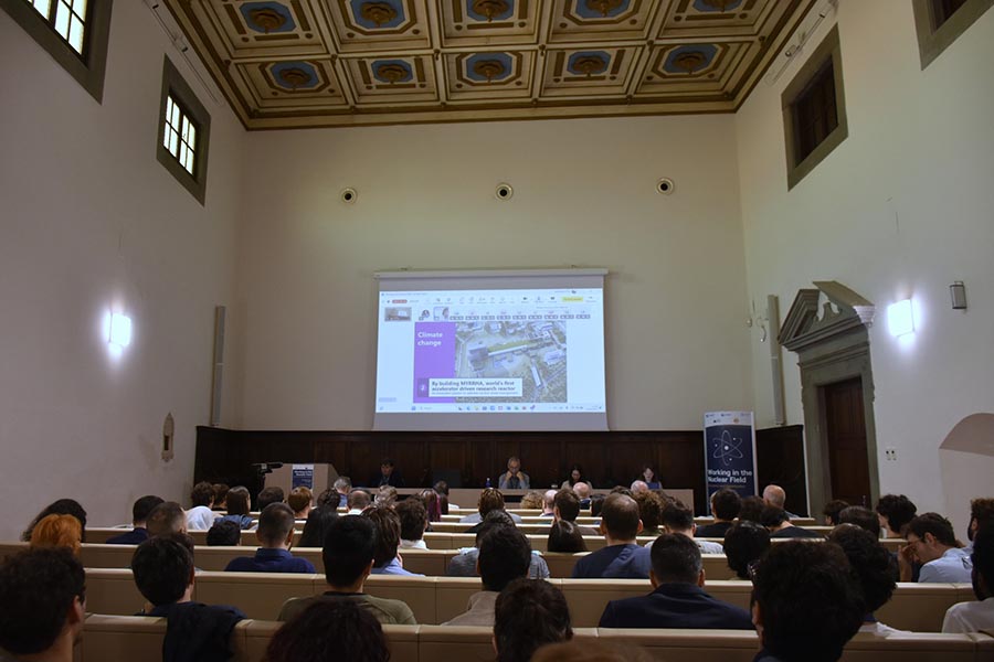 Mercoledì 15 ottobre al Centro Congressi Le Benedettine si è tenuta la seconda edizione di “Working in the Nuclear Field“, il career event internazionale dedicato alle opportunità professionali nel settore nucleare. L’iniziativa, svoltasi sia in presenza che online in lingua inglese, ha coinvolto oltre 200 partecipanti, principalmente studenti e laureati dell’Università di Pisa, ma anche studenti di altri atenei italiani e internazionali.