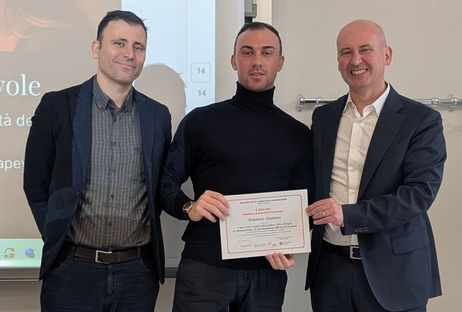 Fare squadra e valorizzare un prodotto simbolo della Toscana come il vino sugli scaffali dei punti vendita della grande distribuzione. È questo il tema al centro della tesi di laurea premiata oggi al Polo didattico San Rossore dell’Università di Pisa, al termine di una mattina di approfondimento sull’economia cooperativa. L’iniziativa rientra nel progetto “Ateneo cooperativo” promosso da Legacoop Toscana, che a Pisa è arrivato alla sua quarta edizione.